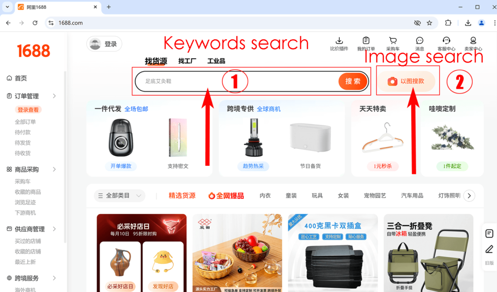 How to search products on 1688.com?