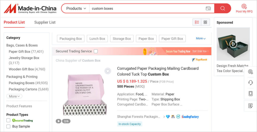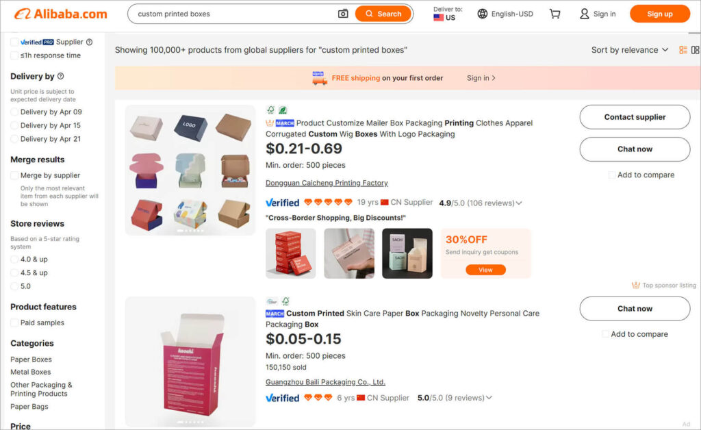 Custom printed packaging from China involves designing and producing personalized boxes tailored to specific product needs, serving both protective and branding purposes while meeting functional requirements (like transportation safety or display appeal). The cost of custom printed packaging boxes is cheaper on 1688.com compared to Alibaba,Globalsources and Made-in-China.com. Check more info here: How to buy from 1688.com ?