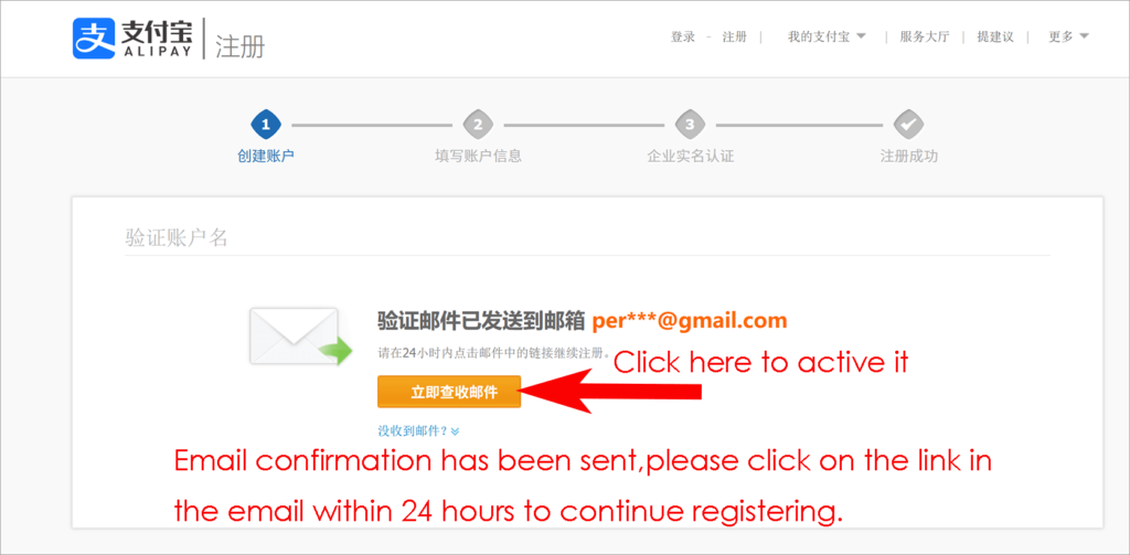 - Click the active link from your email . It needs to fill alipay account info such login password,payment password,name,gender and ID number .