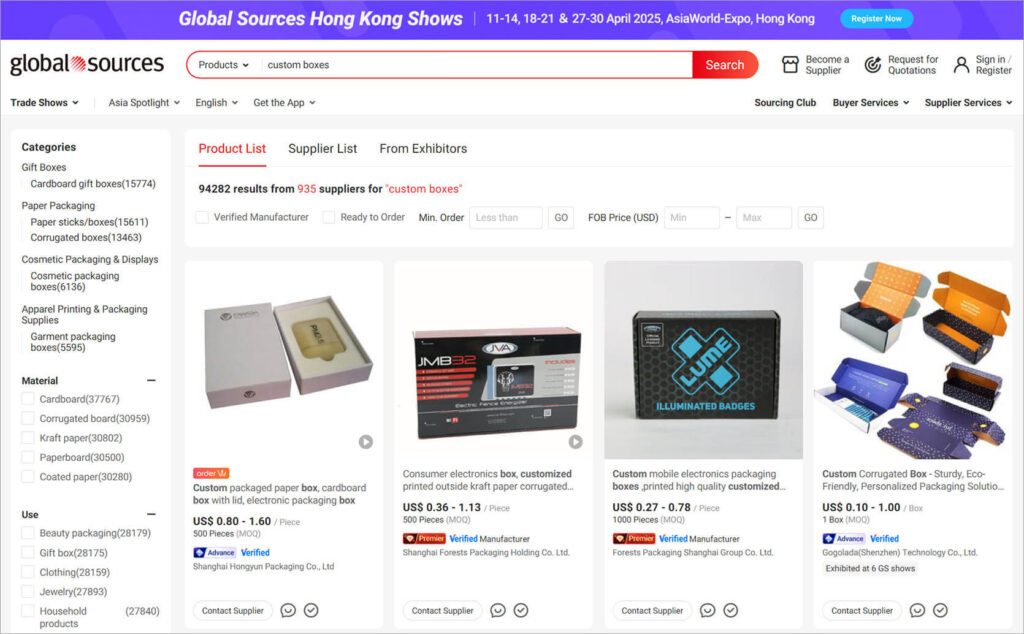 Custom printed packaging from China involves designing and producing personalized boxes tailored to specific product needs, serving both protective and branding purposes while meeting functional requirements (like transportation safety or display appeal). The cost of custom printed packaging boxes is cheaper on 1688.com compared to Alibaba,Globalsources and Made-in-China.com. Check more info here: How to buy from 1688.com ?